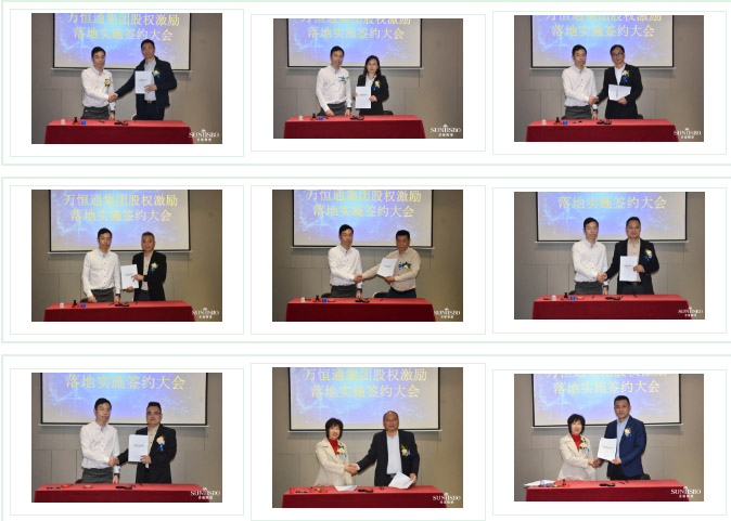 公海jcjc5500集团集团执行董事及法人代表王浩基先生正式为第一期六位虚拟受限股股东授予荣誉证书并签订股权分配协议。